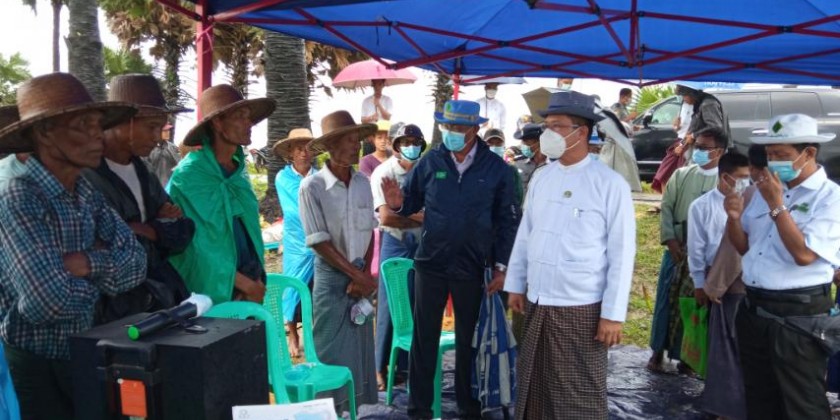 Ayeyawaddy Region Chief Minister U Tin Maung Win attended the ploughing ceremony of green manure at the field of a local farmer in PhaYaGyiKone Village-tract of Eainme Township.