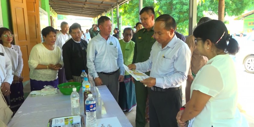 After the conference, the Chief Minister visited bean and sesame farms in NyaungPinSin Village, heard report and highlighted pure varieties, adequate access to agricultural inputs, sufficient water supply and target yield of cultivated crops.