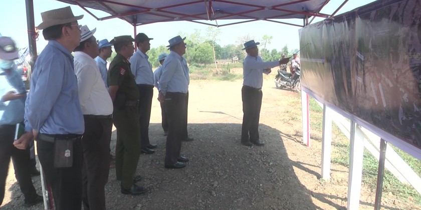 Deputy Minister for Agriculture, Livestock and Irrigation U Bo Bo Kyaw together with the minister for security and border affairs and departmental officials inspected the embankment near Phaungseik village in Hinthada township on 10th May.