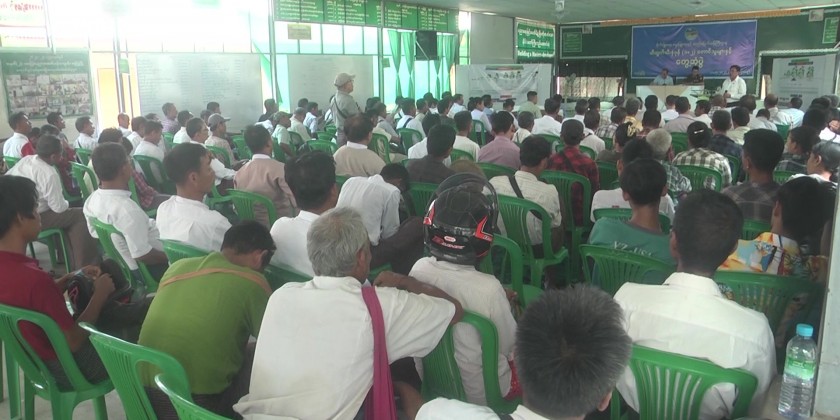 Then, the Deputy Minister and party met with officers and staff from the Departments of Agriculture, Irrigation and Water Utlization and Settlement and Land Record, at Hinthada Township Hall.