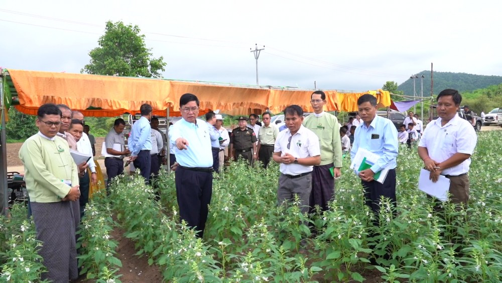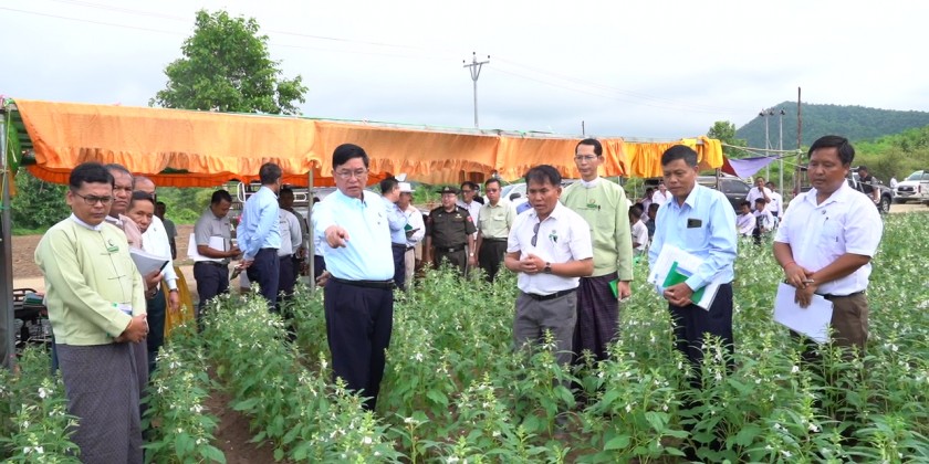 After that, the Chief Minister visited ThaePhyu village in Thayet Township and viewed the thriving plantations of monsoon sesame and chickpeas in the pilot mix-crop farming. He also met with farmers and gave necessary instructions.