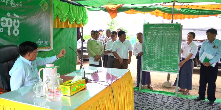 On 11th July, Chief Minister U Tint Lwin held a meeting with departmental officials and heads of districts, townships and wards administrators and local farmers at the Town Hall ofThayet Township. At the meeting, the Agricultural Development Organizations of Thayet, Kan, Mindon and Minhla Townships reported on agricultural development activities of their respective townships.