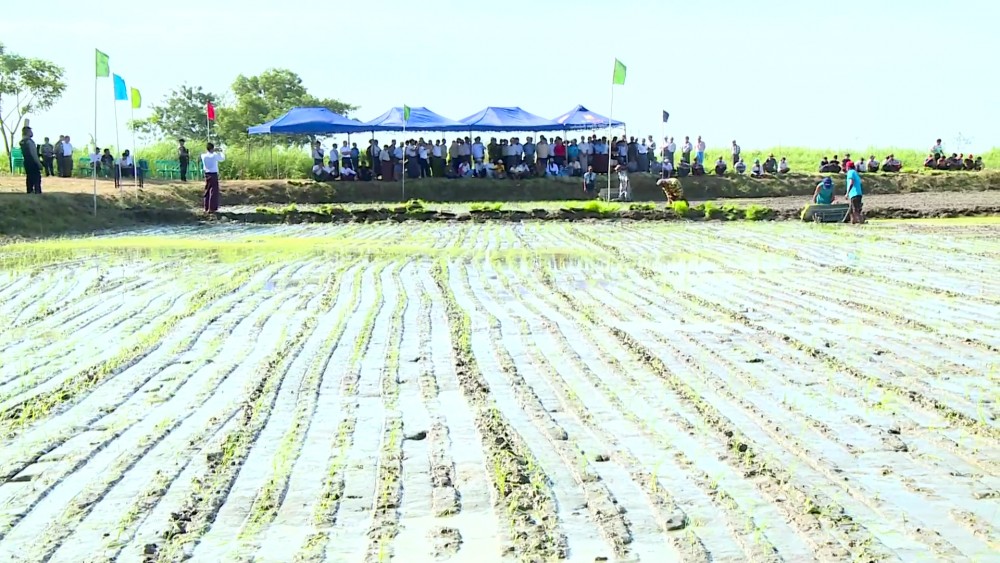 Bago Region Chief Minister U Myo Swe Win attended a Field Demonstration of Cultivation with Hand Planters in AukSu Ward of Thanatpin Township.