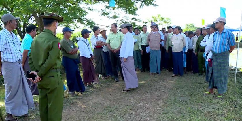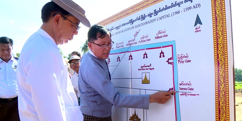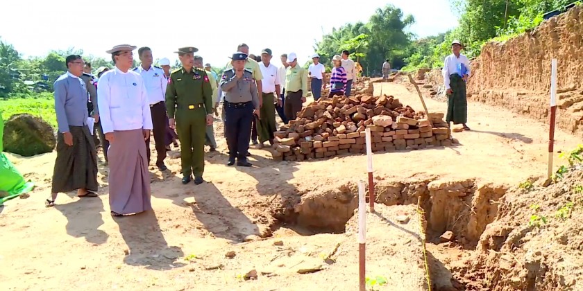 The Chief Minister also held talks with farmers and pledged to provide assistance to achieve goal yield. Also, the Chief Minister visited the Entrance door of the ancient city of Innwa on the Bago- Thanatpin Road and heard report on excavation conditions of Hanthawaddy ancient moat.