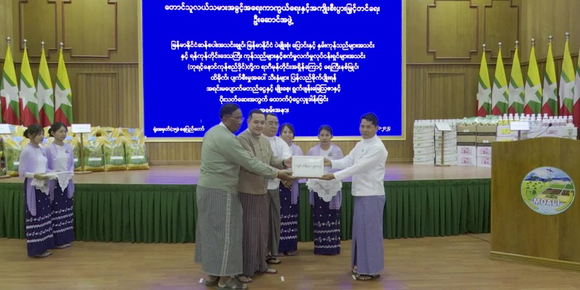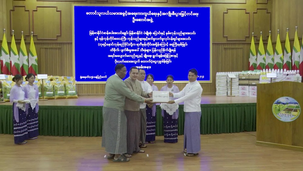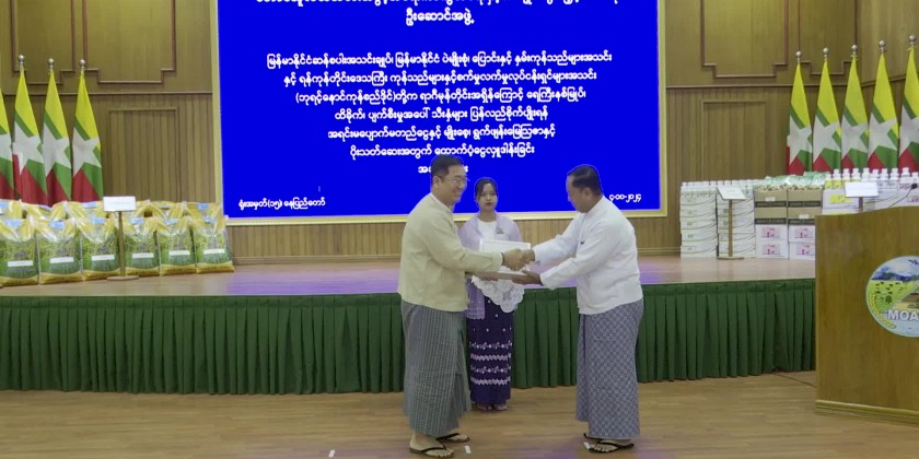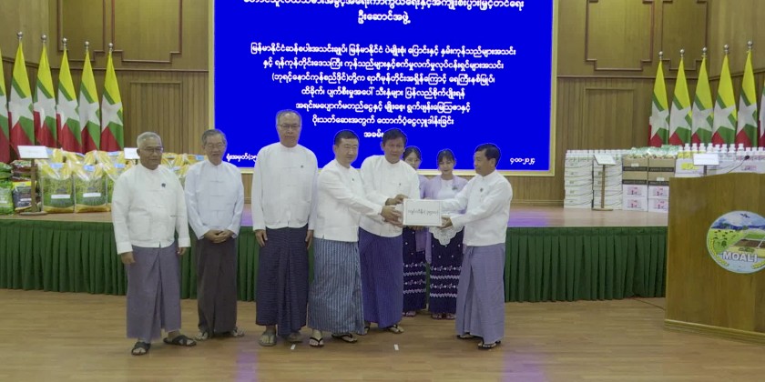 The funds will be used to provide essential resources such as seeds, fertilizers, and pesticides for farmers to recover and sustain their livelihoods. During the ceremony, Myanmar Rice Federation provided a total of 1.25 billion kyats for capital investment and 500 million kyats cash assistance each from Myanmar Pulses, Beans, Maize and Sesame Seed Merchants Association, and the Yangon Region Chambers of Commerce and Industry (Ba YintNaung Commodity Center).