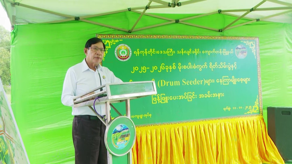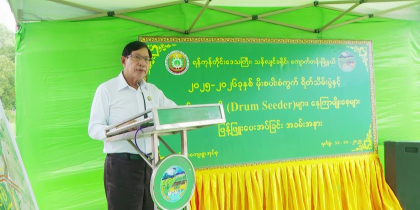 At the ceremony in Nyaung Wine Village Tract, Kyauktan Township, Thanlyin District, Yangon Region, the Chief Minister said that the widespread use of drum seeders can effectively help meet and exceed target yields as it saves on labor costs, reduces time consumption, and ensures uniform crop growth.