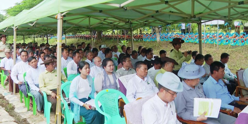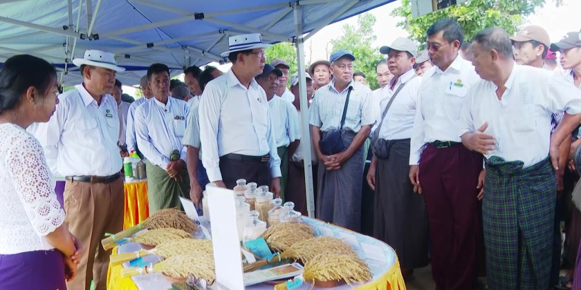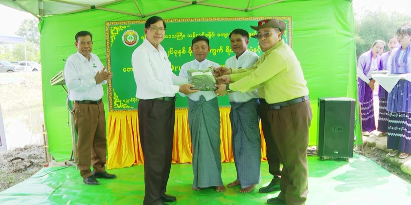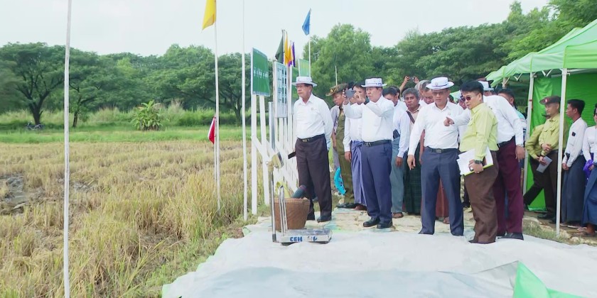 Yangon Region Chief Minister U Soe Thein on Tuesday attended a ceremony for the harvesting of the 2025-2026 monsoon paddy model plot and the distribution of Drum Seeders and sunflower seeds to farmers.