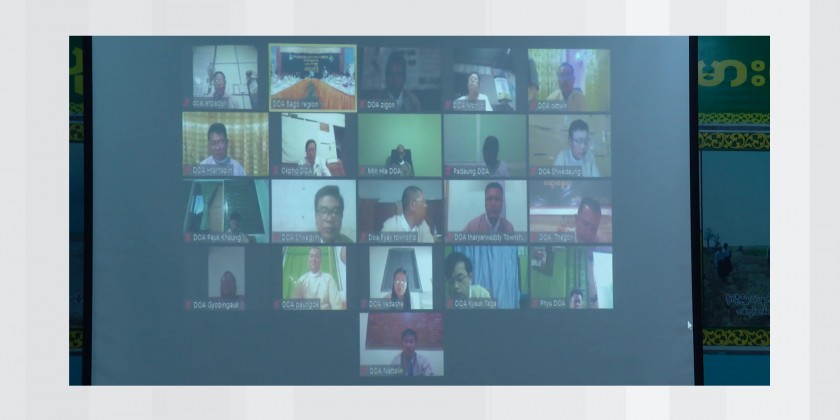 Deputy Minister for Agriculture, Livestock and Irrigation Dr. Tin Htut met with regional, district and township department of agriculture officers at the meeting hall to discuss the matters related to boosting productivity of oil crops and various pulses and beans in Bago Region.