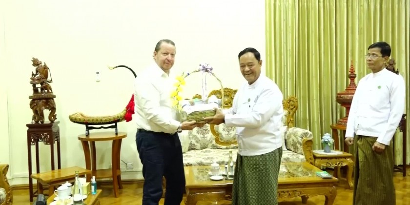 During the meeting, the delegation provided natural foliar spray made with Russian technology for Myanmar. These provisions include 84 liters of Humte Plus and Profi Nitro each and 125 liters of Florata. Union Minister U Hla Moe accepted the provisions and spoke words of thanks. These natural foliar will be used for cultivating sunflower, industrial raw material crops, cotton and summer paddy.
