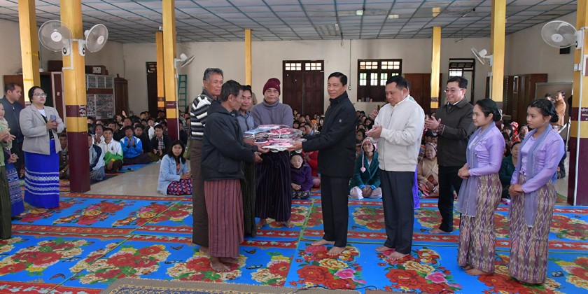 There, they met with temporary displaced persons, expressed words of comfort and provided clothes, soaps and cash assistance donated by the Ministry of Social Welfare, Relief and Resettlement, rice, cooking oil, salt, bean, instant noodle and eggs donated by the Ministry of Border Affairs and the Shan State Government and cash assistance donated by the Ministry of Ethnic Affairs. Also, at the Yangon Monastery, clothes, soaps, cash assistance and foodstuffs donated by the Ministry of Border Affairs, Ministry of Social Welfare, Relief and Resettlement,Ministry of Ethnic Affairs and Shan State Government were provided to temporary displaced persons.