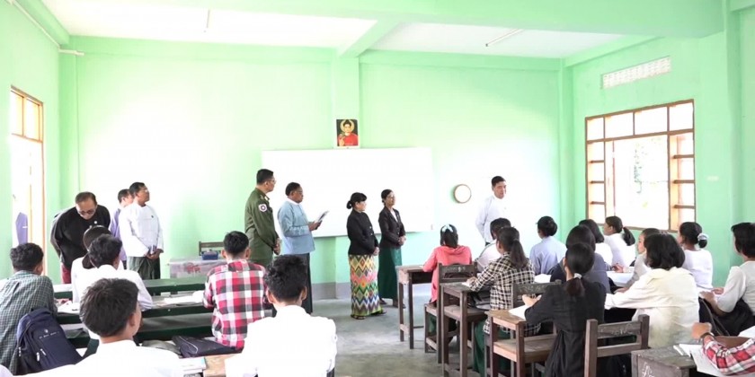 On the same day, at the No. 4 Basic Education High School, the Chief Minister attended aid provision ceremony for Basic Education teachers in Sittwe. In his speech, the Chief Minister stressed the important role of students for the future of the country.