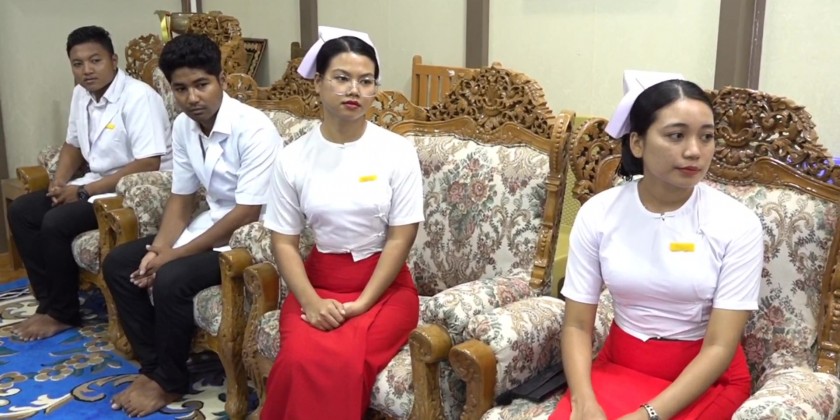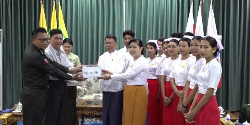 Rakhine State Government provided 100 bags of rice and cash to the School of Nursing and Midwifery on Tuesday. In his address at this aid provision ceremony at the state government office, Chief Minister U Htein Lin urged the trainees of the School to study lessons and memorize the practical lectures in a systematic way and to try hard to become good and skillful nurses.