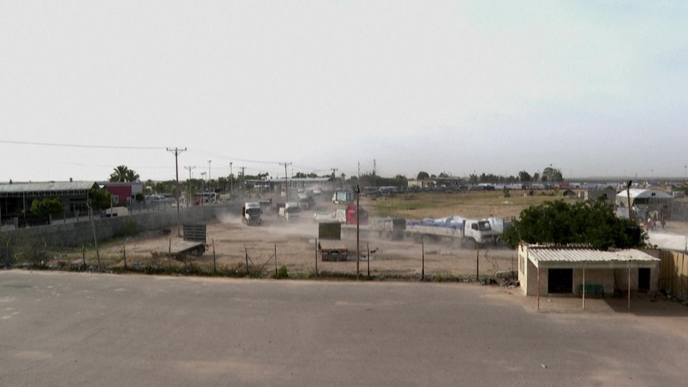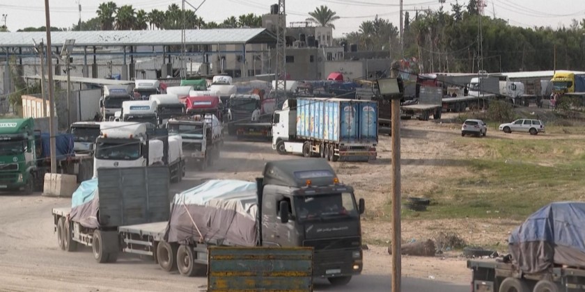 Trucks carrying Humanitarian aid crossed into the southern Gaza Strip via the Rafah border crossing on the second day of truce.
