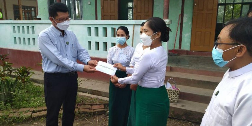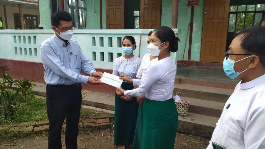 There, cash assistance for rice and reconstruction of a monastery, a school and houses, instant noodle and rescue aid were provided to the victims of strong winds. The strong winds of the 16th and 17th of August totally and partially destroyed 50 houses, a monastery, a school and 5 rice storage facilities in KyoneMaNgael ChaungPhya and KyoneMaNgael villages.