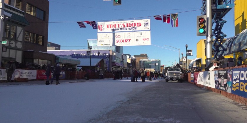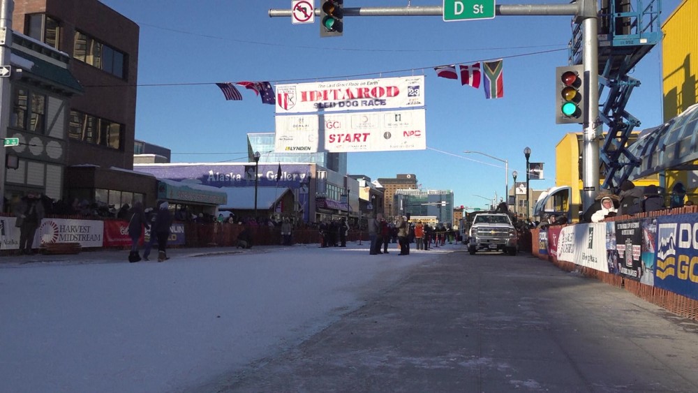 Thousands of fans braved near zero degree temperatures to line Anchorage streets for the ceremonial start, including Gordon Bokhart, from Fort Wayne, Indiana. The Iditarod’s competitive start will be Sunday in Willow, Alaska, about 70 miles north of Anchorage.