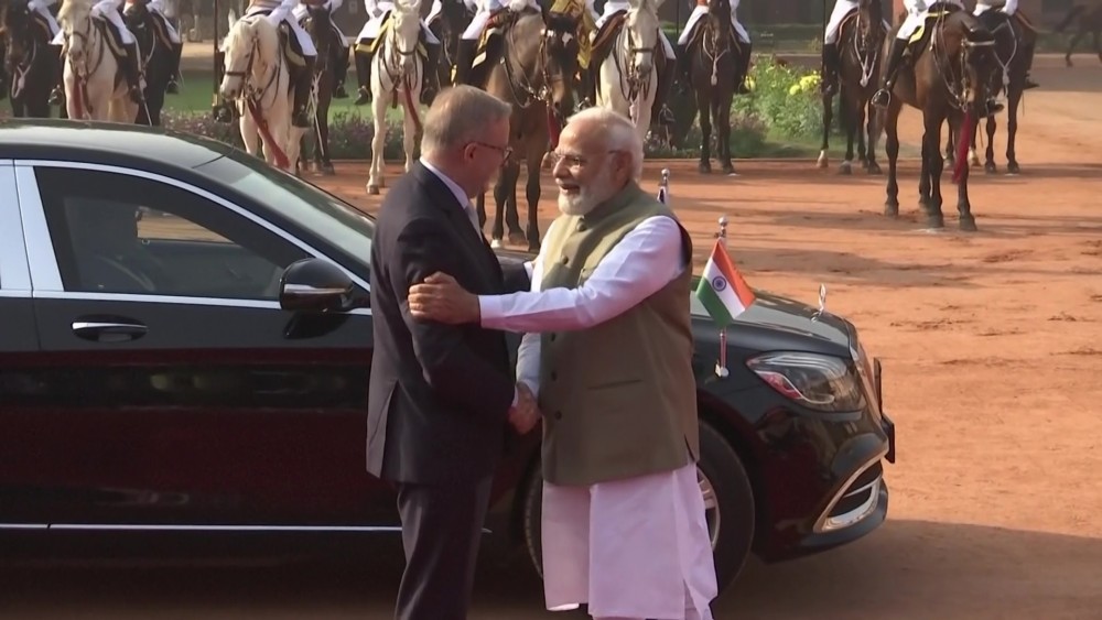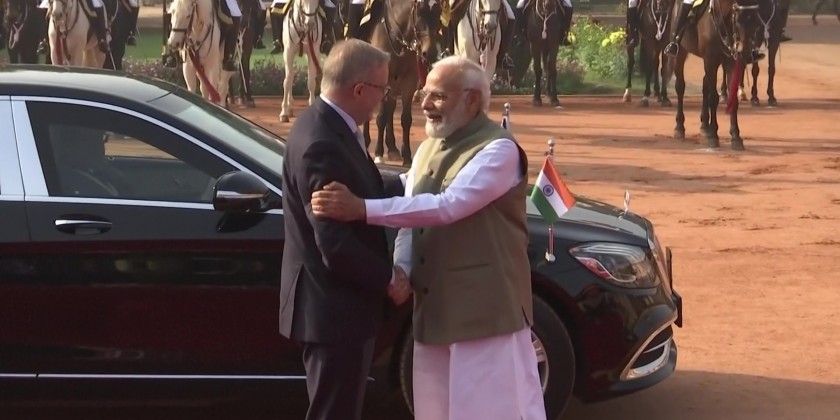 Australia's Prime Minister Anthony Albanese is visiting New Delhi as part of his four-day visit to India. Albanese briefly watched a cricket test match between Indian and Australian teams in Ahmedabad and met India's business leaders in Mumbai, and visited India’s homemade aircraft carrier INS Vikrant.
