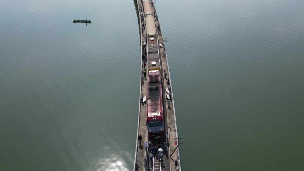 A lone boatman watched the spectacle of Thailand's so-called "floating train" as selfie-seeking passengers soaked up the water views after disembarking from carriages stopped on a narrow bridge. Railway adventures are gaining popularity in the kingdom with tourists seeking off-the-beaten-track travel experiences away from the hordes visiting temples and beaches.