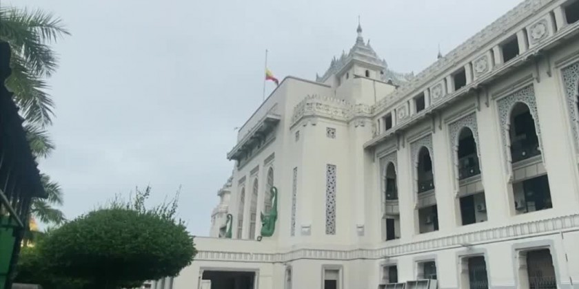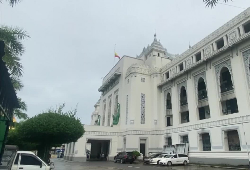The ceremony of offering Alms-food to the members of Sangha dedicating to the fallen Martyrs and sharing merits was held at the meeting room of the City Hall of the Yangon City Development Committee in the morning on 19th July.