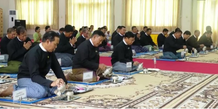 First, the congregation led by the Nay Pyi Taw Council Chairman U Than Tun Oo observed five precepts administered by Presiding Sayadaw of MingalarZayyon Pali Takkatho monastery, took the Paritta Suttas.