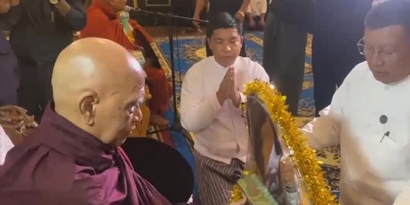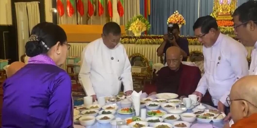 Then, the congregation led by Nay Pyi Taw Council Chairman offered the offertories to the Sangha and shared merits gained. After that, members of Sangha were offered a day meal, it’s reported.