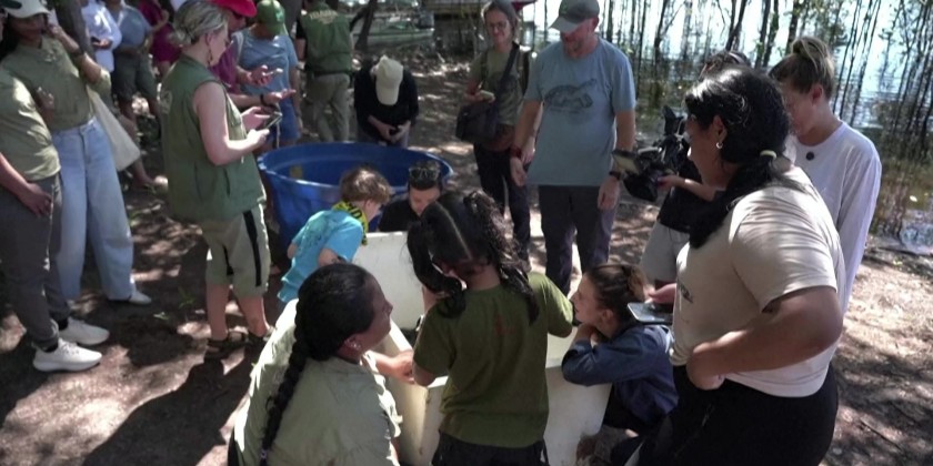 Riverine communities and scientists released around 1.500 Amazonian turtles at Jau National Park, located in the Anavilhanas archipelago on the Rio Negro in the Amazon rainforest, Amazonas state, Brazil.