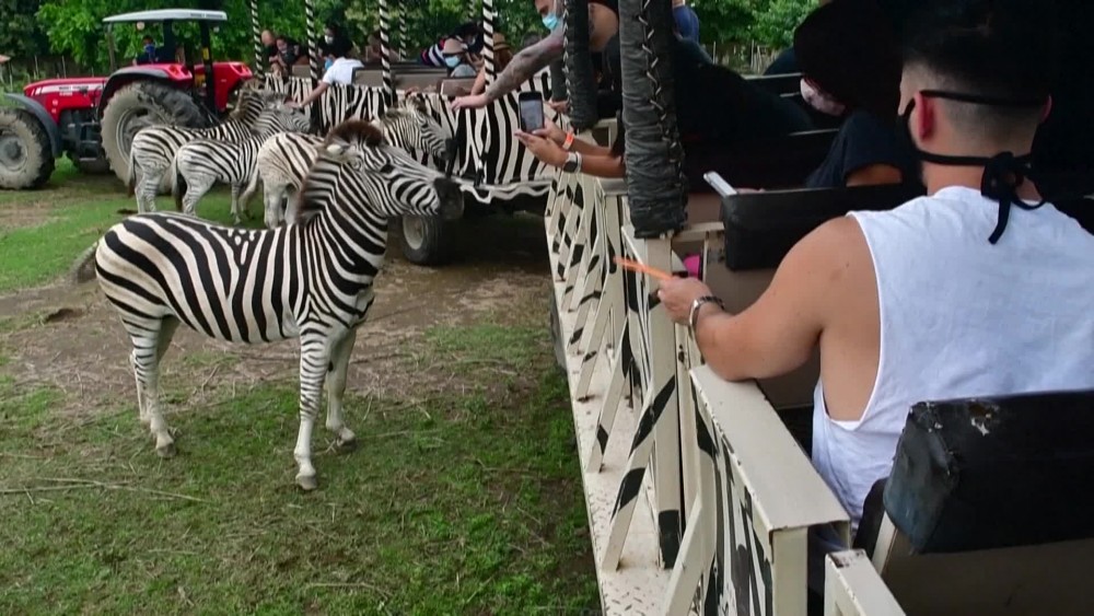 Local and international tourists are once again able to visit the Ponderosa Adventure Park in western Costa Rica. More than 300 animals of 13 different species wander the 100-hectare park, though visitors have to abide by new sanitary measures due to the coronavirus pandemic. The Ponderosa Adventure Park boasts more than 300 animals of 13 different species, mainly of African origin.