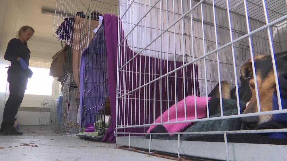 While refugees keep crossing into Poland from Ukraine, a German organisation has set up a shelter for pets stranded in the chaos of conflict. Sasha Winkler, a 35-year-old from the Winkler Aktiv organization, explained that the shelter is looking after animals left behind as well as street dogs in the shelter in the Polish town of Medyka by the Ukrainian border.