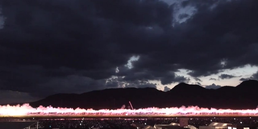 Yellow and green fireworks were used to create an image of a sunflower. After that, 2,000 fireworks were ignited in rapid succession in the space of about five minutes. The event is one of the largest of its kind in the country.