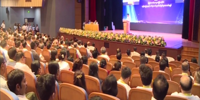 First, chairman of the UMFCCI, U Aye Win delivered a welcome speech. Then, the Deputy Prime Minister Union Minister for Planning and Finance U Win Shein gave a speech highlighting the crucial role of private sector comprised of investment, creativity, human resource and technology in economic development of the country.