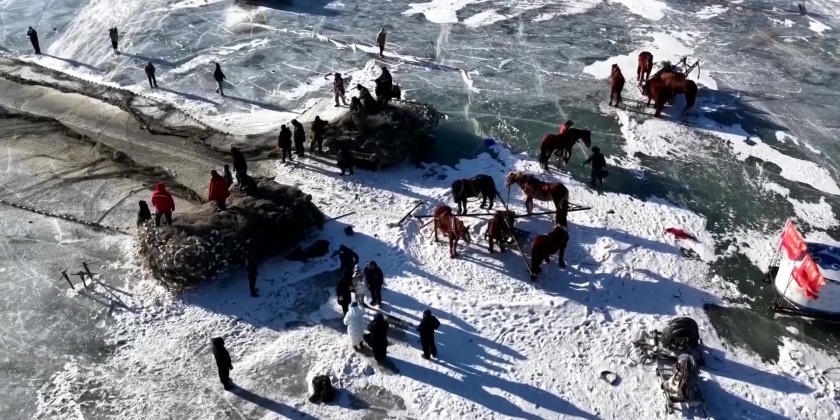 Chagan Lake’s ice fishing tradition, which dates back to the Liao Dynasty (907-1125), was recognized as a national intangible cultural heritage in 2008. The ancient method of net fishing requires teamwork. The time-honored winter fishing at the Chagan Lake has become a signature tourism attraction in the city.