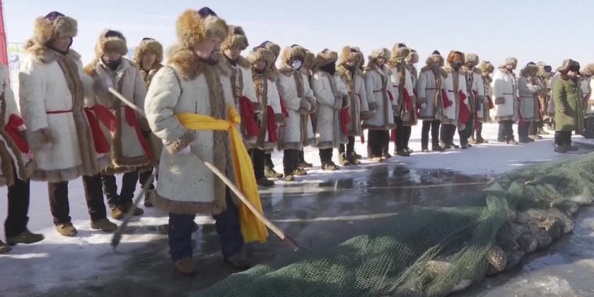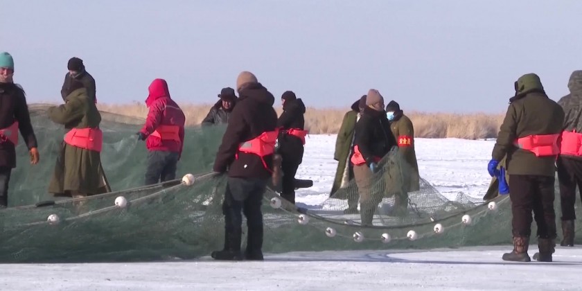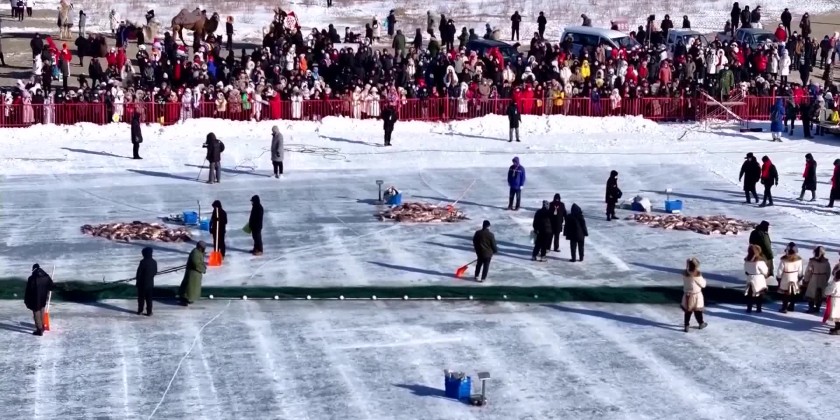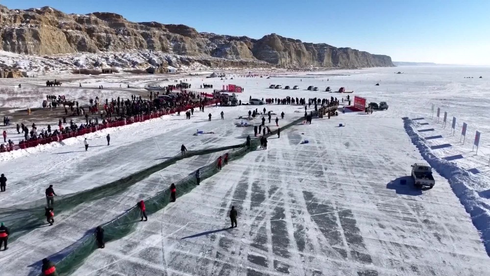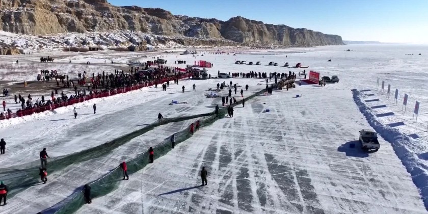 The annual Winter Fishing Festival opened on the frozen Ulungur Lake in China’s Xinjiang Uygur Autonomous Region on Saturday. For over six decades, fishermen have followed the traditional winter fishing method by putting down a giant net that can be over 1,000 meters long under the ice. A single trawl net can capture more than 5,000 kg of fishes.