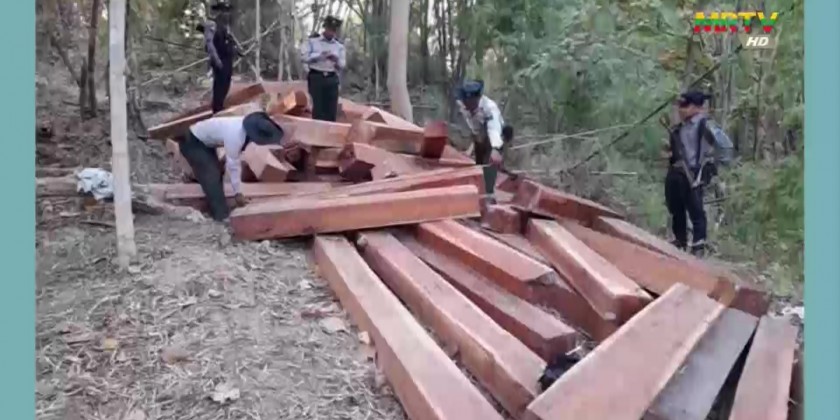 A total of 4.7704 tons of illegal teak and hardwood timber (estimated at 1.335 million Kyats) were seized in the forest reserve in Bago District and action was taken in accordance with the forest law. Thus, a total of five arrests were made on 12 and 13 March (estimated value is over 35.704 million Kyats), according to the Anti-Illegal Trade Steering Committee.