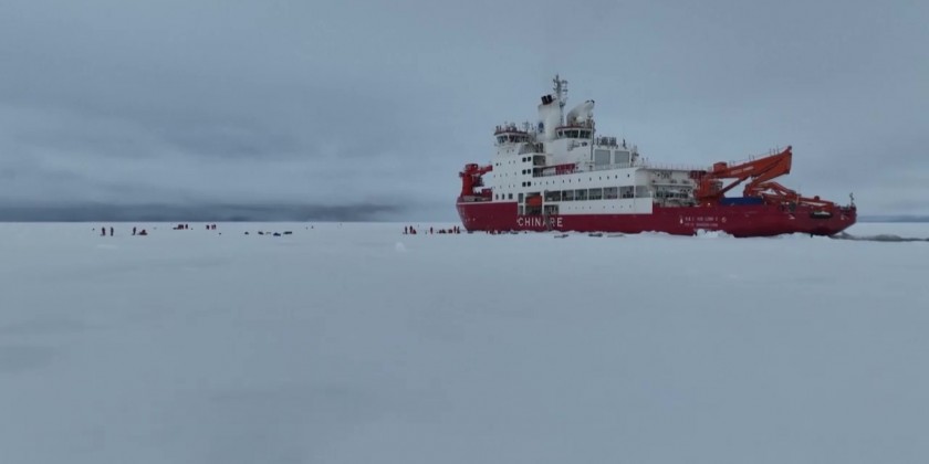 Since arriving in the region on Sept. 5, researchers have carried out comprehensive surveys on the atmosphere, hydrology, biology and sea ice. The research will help fill the gap in China's database on the North Pole region. The expedition team set sail from Shanghai on July 12. They are expected to travel nearly 15,500 nautical miles before returning to Shanghai in late September.