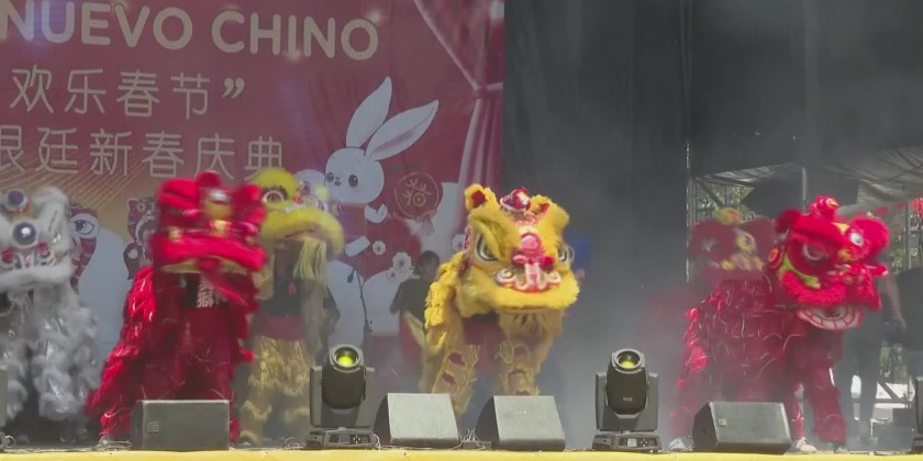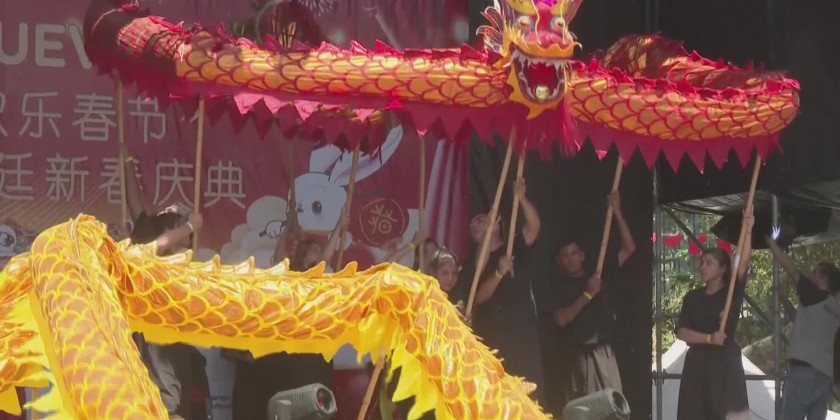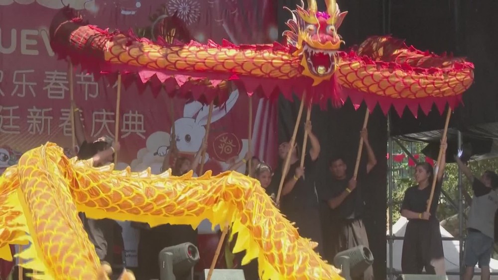 Hundreds celebrated the Lunar New Year in Buenos Aires' Chinese neighborhood on Sunday. A parade of dragons danced through the crowds while spectators tried to touch them in order to be blessed with good luck for the rest of the year.