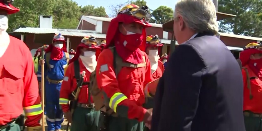 Argentina leader greets brigade combating wildfires