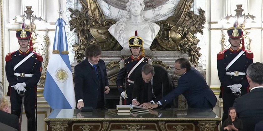 Argentine President Javier Milei swore in Manuel Adorni as his new chief of staff in Buenos Aires, planning further changes to his team as part of the relaunch of his administration following his victory in the midterm elections. Adorni, who had been serving as the presidential spokesperson, replaces Guillermo Francos, who resigned after a midterm election victory for Milei's party.