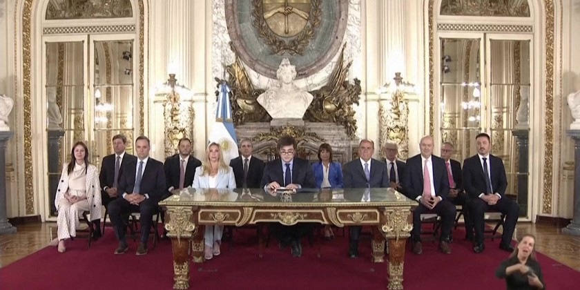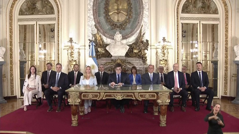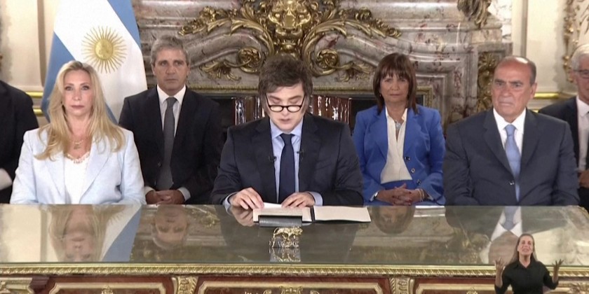 Argentine President Javier Milei promised on Tuesday that his government will seek a free trade agreement with the United States next year and added he will use his rotating presidency of the Mercosur Economic Bloc to boost the autonomy of its members to make deals.