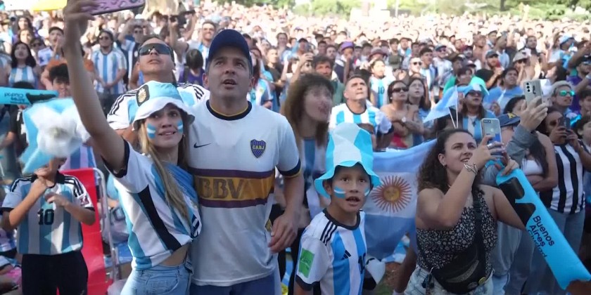 Thousands of fans dressed in the sky blue colours of the Argentine flag cheered the 3-0 victory of the national football over Croatia, securing their spot in the final at the FIFA World Cup.