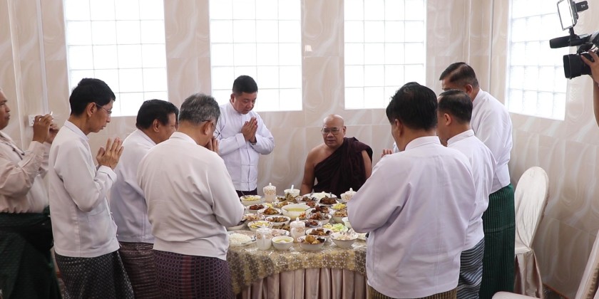 The Chief Minister, together with the guests, observed five precepts, donated various items and cash donation to the presiding Sayadaw Bhaddanta Vimala, and offered day meal to the members of Sangha at the monastery.