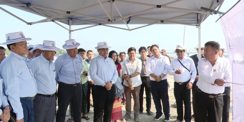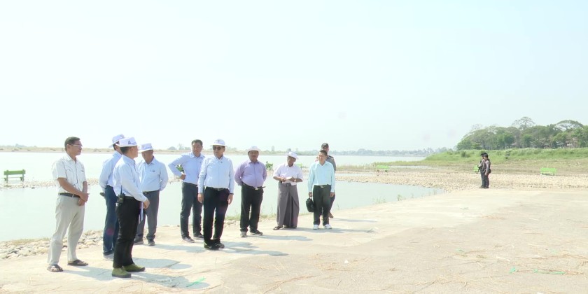 The Chief Minister and officials then inspected the availability of roads for vehicles transporting sand within the sand dredging area, ensuring road safety for the transportation of materials while coordinating with entrepreneurs. Later, the Chief Minister and officials visited the Ayeyarwady River view relaxation area in Sitapu Ward and inspected the sites of sunflowers cultivated along the riverbank area, evaluating land clearing efforts and planning for additional planting during periods when river water levels are receded.