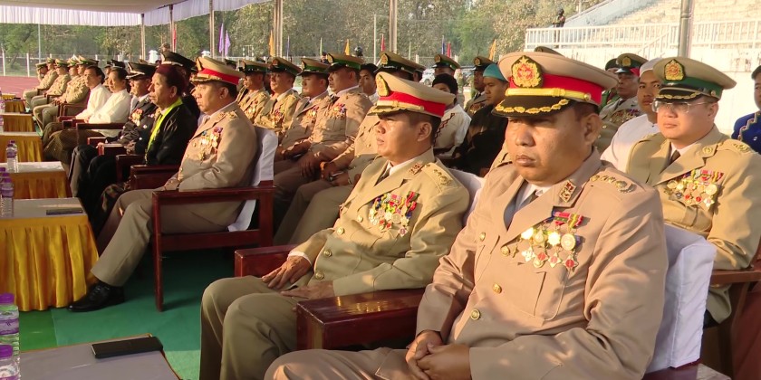 The military parade was carried out in a military column of the parade companies with the parade commander and units leading the way in formation. Following this, the State Chief Minister U Khet Htein Nan, Commander of North command Ma-J Gen. Aung Zaw Htwe, senior military officers, members of the state government, unit commanders from the military, and distinguished guests paid their respects to the national flag and fallen Tatmadawmen of the armed forces.