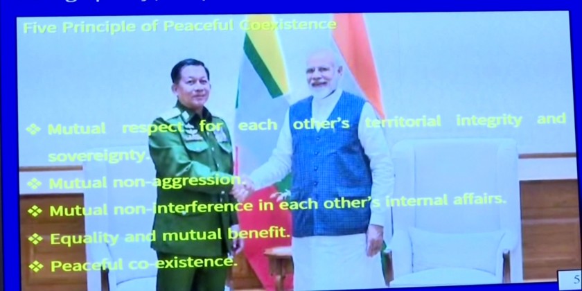 During the meeting, Lt. General Ko Ko Oo from the Office of Commander-in-Chief of Defence Services (Army) and India's Joint Director-General of Military Intelligence Major General Charanjeet Singh Dewgun, YSM, ADG MI(A) delivered speeches and exchanged views on respective sectors. Then, the decisions of the meeting and completion of working processes were read out.