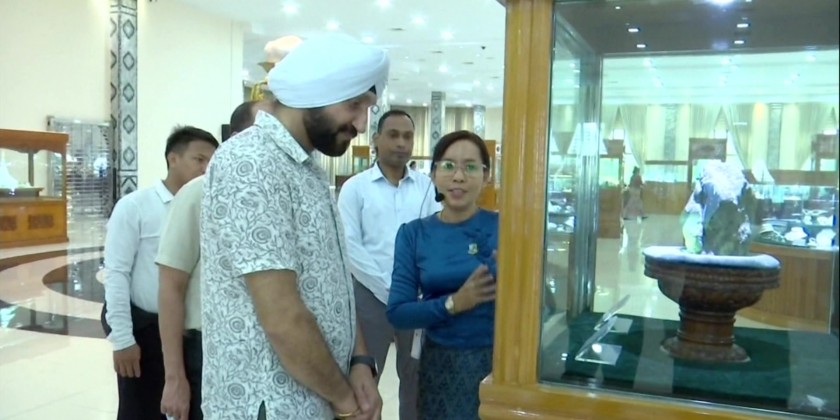 During the visit in Myanmar, the Indian delegation visited landmarks in Nay Pyi Taw such as Uppatasanti Pagoda, Maravijaya Buddha Image, Memorial to the Fallen Heroes and Gems Museum. Also, they paid visits to the Inle Lake in Nyaung Shwe Township of southern Shan State and Bogyoke Aung San Market and Shwe Dagon Pagoda in Yangon.