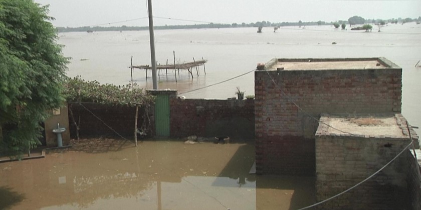Several hundred villages and thousands of acres of cropland in the central province were inundated when the Sutlej river burst its banks on Sunday.
