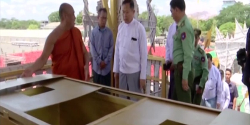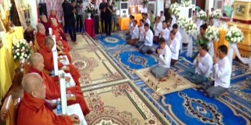 The Deputy Prime Minister and party then took the Five Precepts from the Presiding Sayadaw of Ma SoeYein Monastery Sayadaw and donated offertories to members of the Sangha and shared the merit gained. Led by Sayadaws, the Deputy Prime Minister and attendees recited Sanwaiga Gatha.