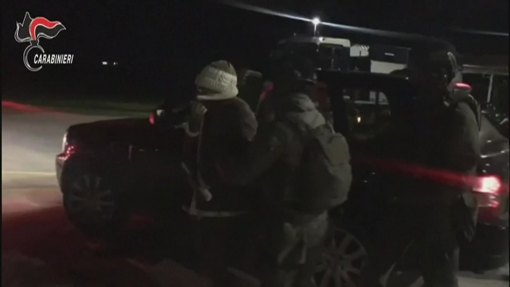 Footage shows detained Mafia boss Matteo Messina Denaro arriving late on Monday night at a Palermo military airport to be moved to a detention centre.