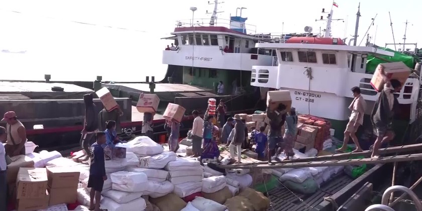 The M.V. Tawwin Thiri vessel carried a total of 400 tons of rice and consumer goods, while the M.V. Aung Yatana Win vessel brought 600 tons of rice and essential food supplies.