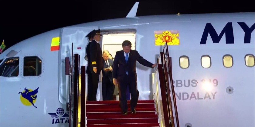 The Commission Secretary Joint Executive Chief General Ye Win Oo, Commission member Union Minister for Foreign Affairs U Than Swe, Union Ministers U Nyan Tun, U Ko Ko Lwin, Dr. Thet Khaing Win, Mandalay Region Chief Minister U Myo Aung, senior military officers from the Office of the Commander-in-Chief, deputy ministers, and responsible officials from the military and civil sectors, accompanied the Acting President, SSPC Chairman, on the trip, also departed.