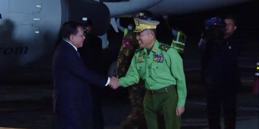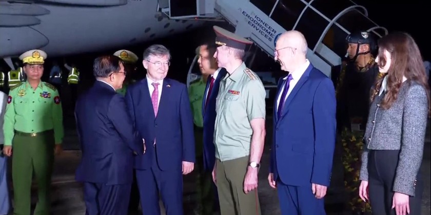 Then, the Myanmar high-level delegation led by the Acting President, SSPC Chairman arrived back at the Tatmadaw Airport in Nay Pyi Taw in the evening. They were welcomed back by SSPC Vice-Chairman Vice-Senior General Soe Win, SSPC member Prime Minister U Nyo Saw, SSPC member Executive Chief General Aung Lin Dwe, SSPC members, Union ministers, Ambassador of Russia to Myanmar Mr Iskander Azizov, senior military officers from the Office of the Commander-in-Chief, the commander of Nay Pyi Taw Command, and officials from the Russian Embassy and the Office of the Military Attaché in Myanmar.