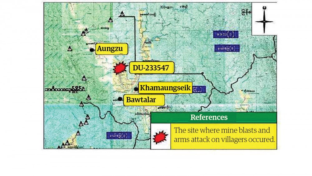 At 8:55 am on 30 March, a man identified as U San Aung Phyu and 11 Dainet residents from Mingalar Nyunt Village were on their motorbikes to go check on some bird traps. They parked their bikes between Kamaungseik and Aungzu Villages and went into the woods on foot.